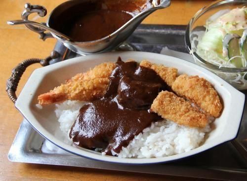 朝来の銘店「ともしび」の店主手作りカレー。じっくり煮込んだ但馬牛とたまねぎ、にんじん、しょうが、にんにくがルーに溶けこんだコクのある味わいです。